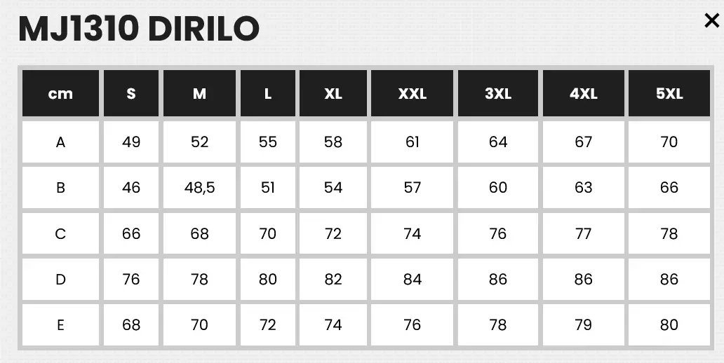 | cm | S | M | L | XL | XXL | 3XL | 4XL | 5XL |