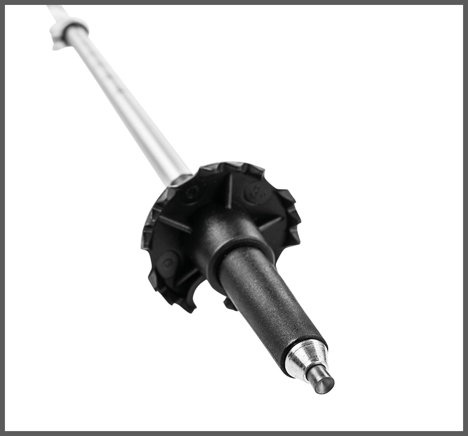 Kije zakończone są odpornym na ścieranie widiowym grotem.