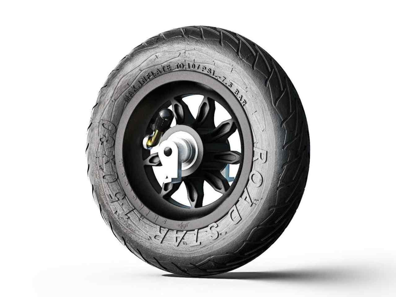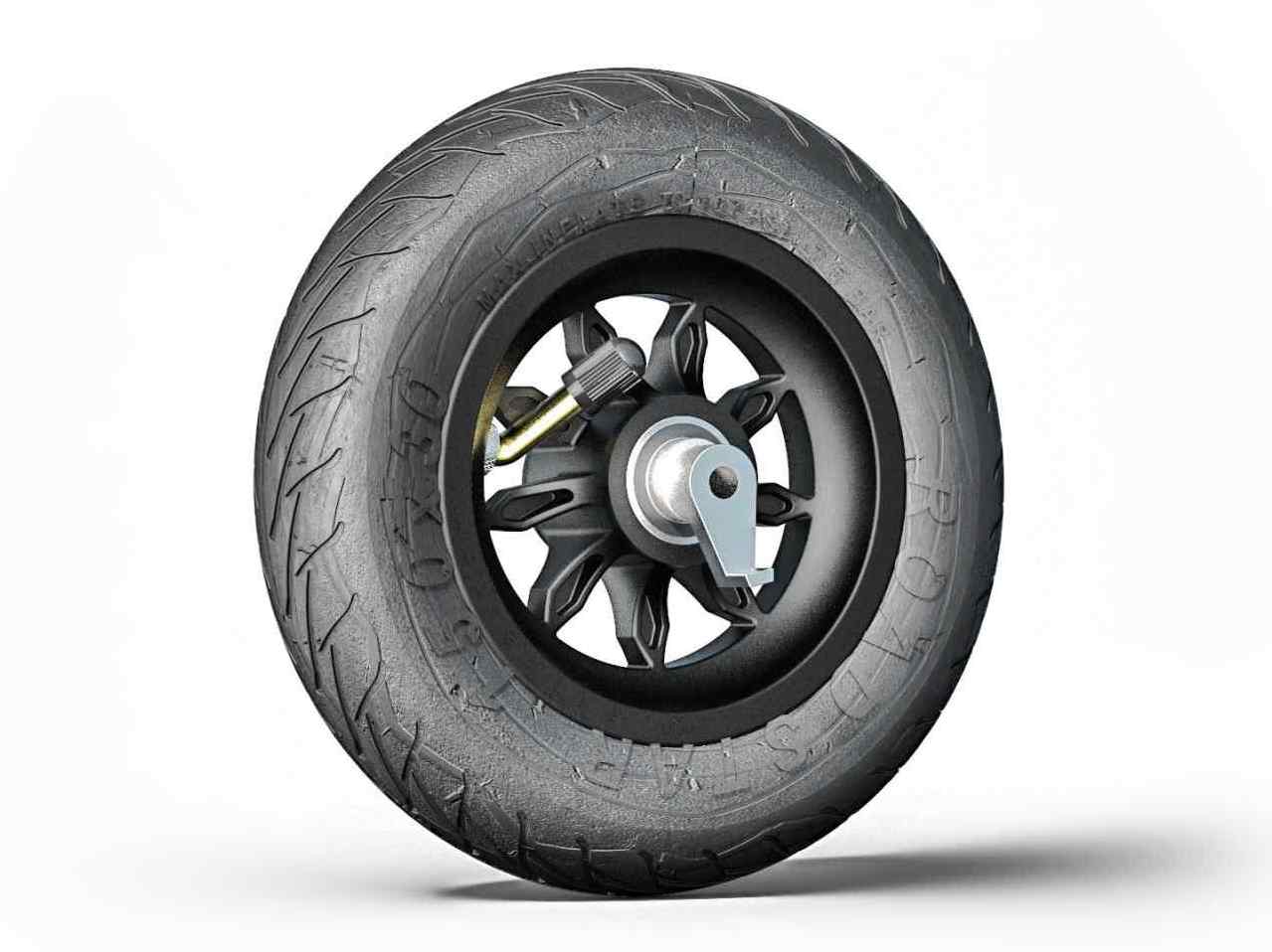 Kompletne zmontowane, komplet zawiera felgę (9SB), oponę Road Star (107 PSI; 7.5 bar), moduł blokady cofania, dętkę.