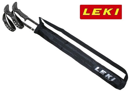 Pokrowiec na kije trekkingowe, pokrowiec na składane kije do nordic walking LEKI. Długość 93 cm, pasek do noszenia. Wykonany z mocnego materiału cordura. Zamykany na pasek zaciskowy.