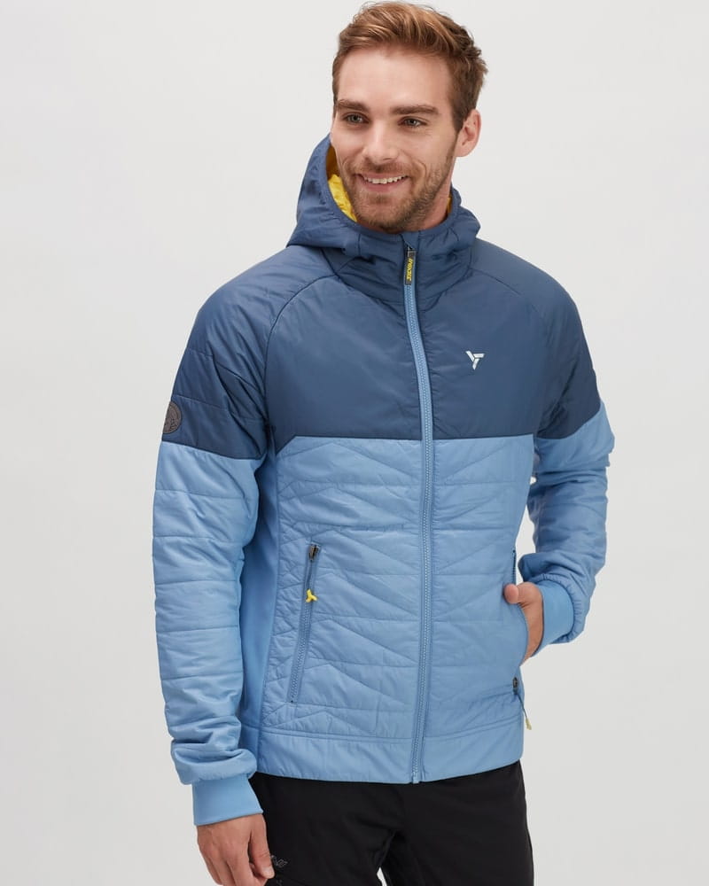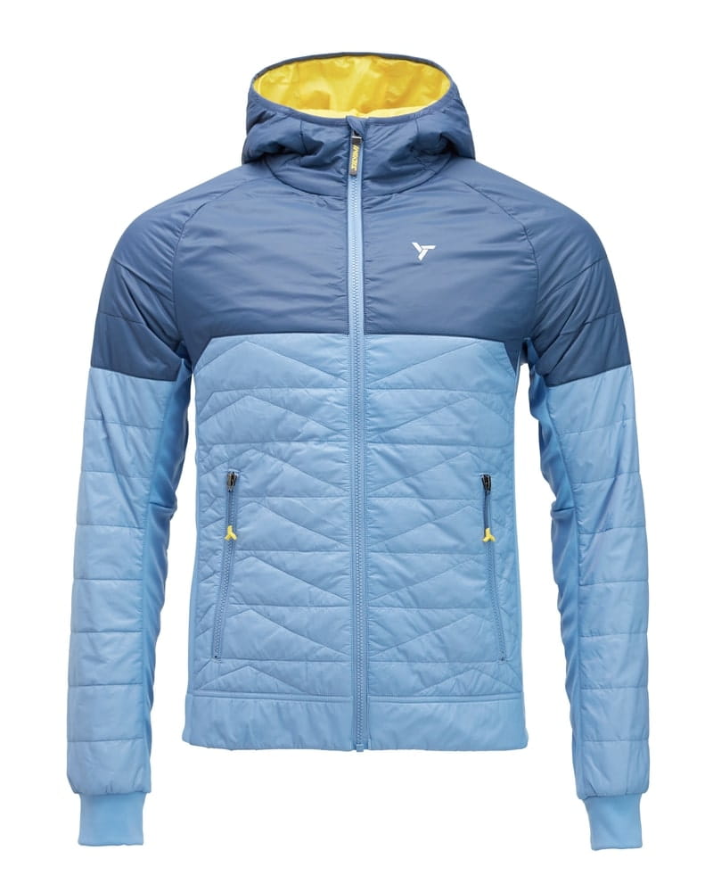 Męska, kurtka z kapturem, ocieplona Primaloft. Polecana na biegówki, jako ocieplenie podczas postojów, bardzo lekka, po złożeniu (składa się do swojej własnej kieszeni), zajmuje bardzo mało miejsca. Zewnętrzna warstwa nylonowa, odporna na wiatr, izolowana Primaloft Silver (60g/m2), który ma właściwości zbliżone do naturalnego puchu, ale nie absorbuje wilgoci i odprowadza pot, znakomity komfort termiczny. Panele boczne z elastycznego materiału POWERtherm zapewniają dodatkową wentylację.