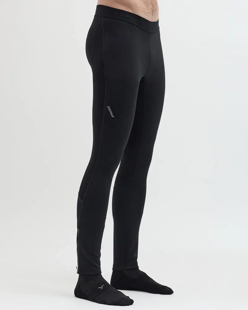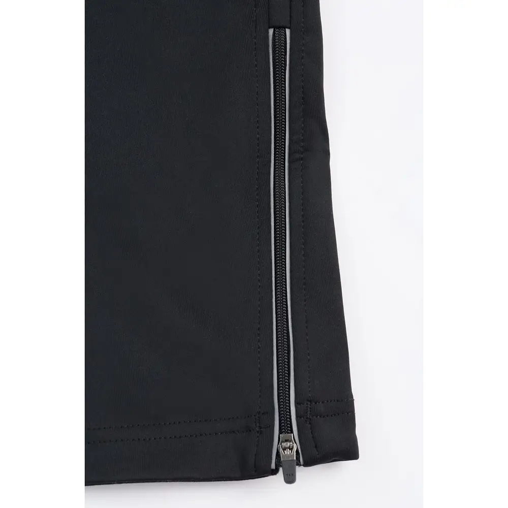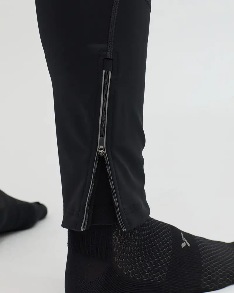 Spodnie z ocieplonego elastycznego materiału szczotkowanego po stronie wewnętrznej, któty skutecznie usuwa pot i służy jako izolacja termiczna. Przód spodni (90% poliester i 10% elastan) chroni przed wiatrem i wodą dzięki membranie 7000/6000, zapewniając ochronę nawet przy niesprzyjającej pogodzie. Tylna część (88% poliamid z 12% elastanem) wykonana z ocieplonego elastycznego, oddychającego materiału, dzięki czemu spodnie idealnie pasują i zapewniają skuteczną termoregulację. Elementy odblaskowe polepszają bezpieczeństwo. Krótki boczny zamek u dołu nogawki zapewnia wygodę podczas ubierania się i lepszy kształt spodni podczas uprawiania sportu. Z tyłu zapinana na zamek kieszeń. Kolor czarne.