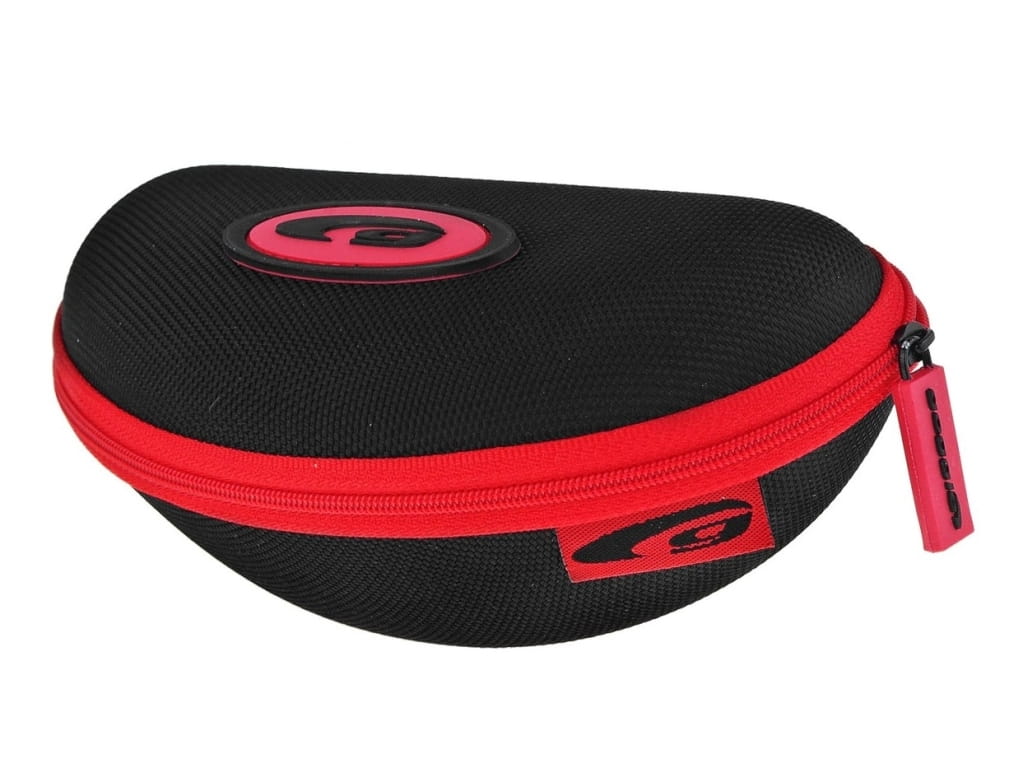 Twarde etui w zestawie, zapewnia bezpieczne przechowywanie okularów. Wyposażone w zaczep do mocowania do paska.