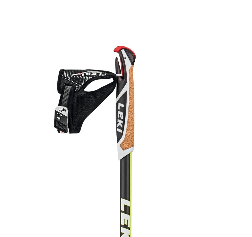 Połączenie uchwytu z rękawicą: system wypinania Trigger Shark 2.0-patent LEKI-najszybsze wypinanie wśród wszystkich dostępnych na rynku, stosowany w wyczynowym narciarstwie biegowym.
