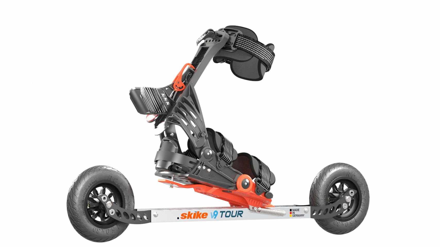 Nartorolki terenowe Skike V9 Fire 150 z pompowanymi kołami 150 mm, do stylu łyżwowego i klasycznego, to rozwiązanie dla ludzi aktywnych. Duże koła umożliwiają jazdę po gładkiej nawierzchni, a także po drogach żwirowych i gruntowych. Jeśli poznałeś urok jazdy na rolkach lub biegówkach, tu łączysz obie aktywności i możesz biegać przez cały rok. Jeździsz w zwykłych butach sportowych.