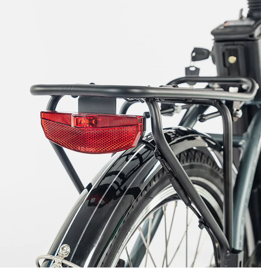 Nowoczesna bateria litowo-jonowa umieszczona centralnie w ramie za sztycą siodełka. Bateria zabezpieczona jest zamkiem z kluczykiem. Po otwarciu zamka, można ją łatwo wyjąć.