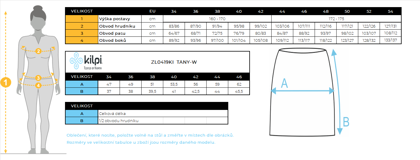 Zastosowane technologie w spódnicy Kilpi TANY-W