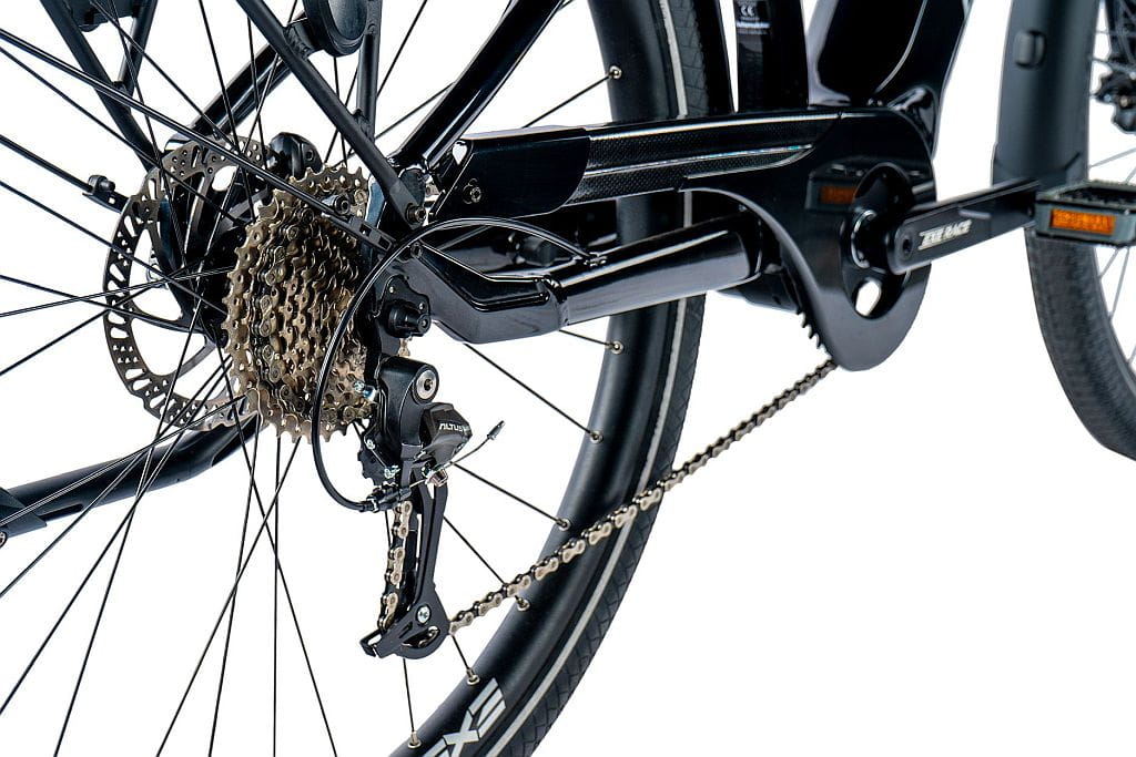 Rower elektryczny wyposażony jest w centralny silnik Bafang M300 o nominalnej mocy 250 W i maksymalnej mocy 350 W. Silnik posiada wysoki moment obrotowy, który pozwoli na osiągnięcie do 80 Nm i jest wyposażony w czujnik prędkości.