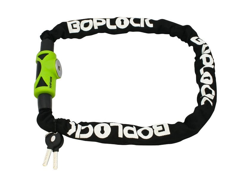 Zapięcie Boplock TY756 łańcuch stalowy ze stali hartowanej odpornej na przecięcia. Poliestrowy rękaw zabezpiecza roweru przed porysowaniem. Kolor: czarny Typ: łańcuch ze stali Długość: 100 cm. Średnica: 8 mm Zamykanie: zamek na klucz - 2 szt.